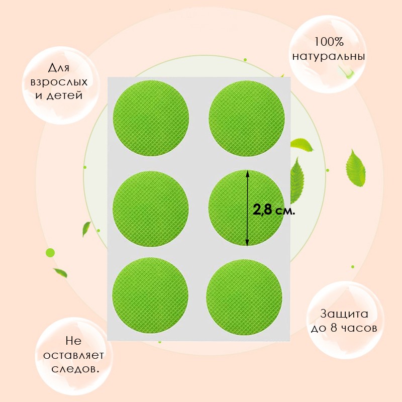 Патчи-репеллент от комаров с эфирными мас..показатьлами сделаны из тонкой ткани, пропитанной веществами, отпугивающими насекомых. Подходят для взрослых и детей. Содержат 100% натуральные компоненты, абсолютно безопасные для человека.