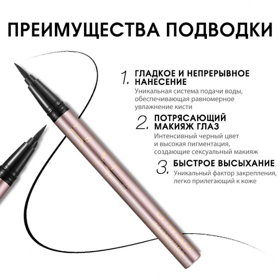 Насыщенный черный цвет подводки подчеркнет глубину вашего взгляда и придаст образу особый шарм. Подходит для чувствительных глаз.