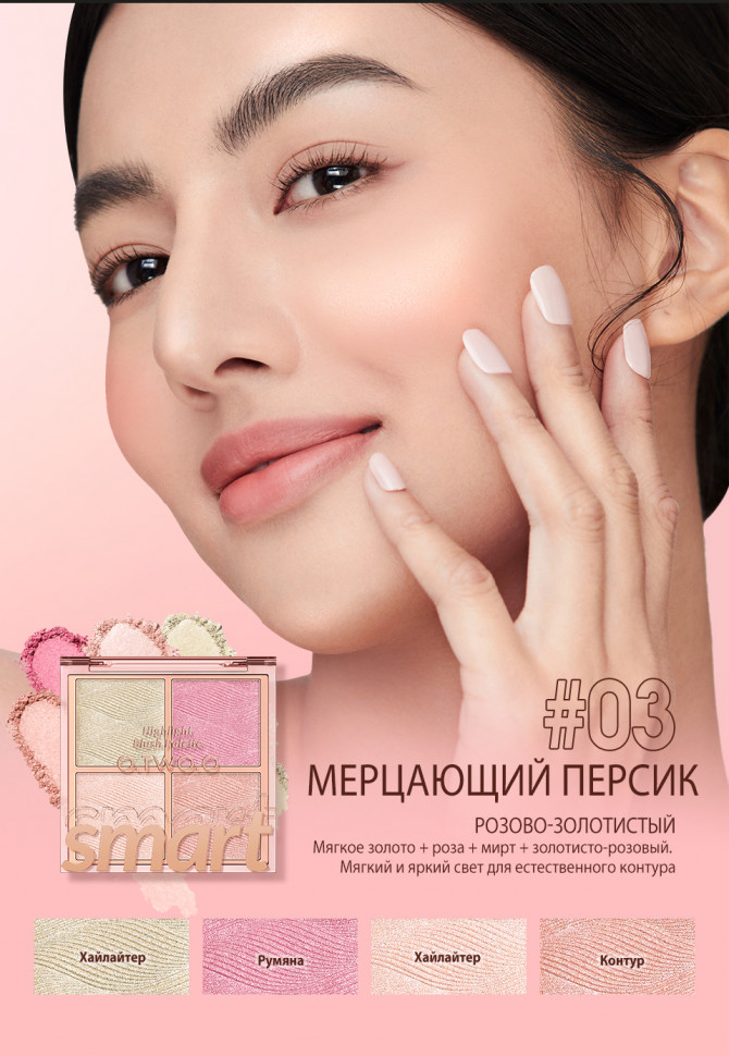 * Палитра включает в себя 4 разных цвета для создания идеального сияния. Обладает великолепным эффектом мерцания, который может сделать вас более очаровательной и мгновенно осветить вашу кожу.