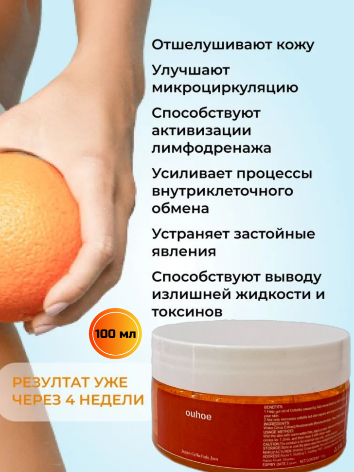Гель- скраб состоит из 2 ключевых ингредиентов для борьбы с целлюлитом: