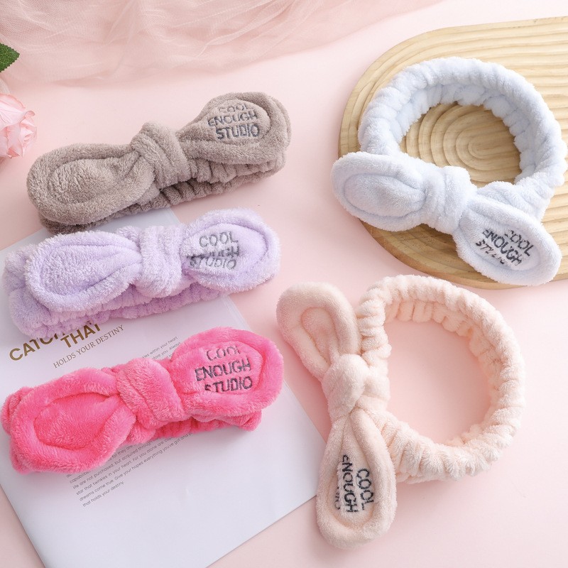 Плюшевая косметическая повязка-бант на голову (бант с проволокой)