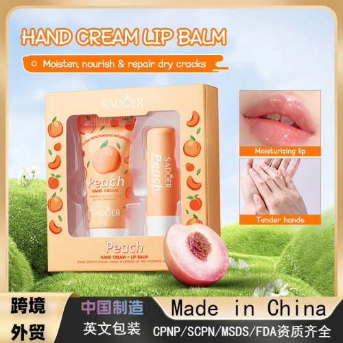 Подарочный набор персиковый крем для рук и бальзам для губ SADOER Peach hand Cream + Lip Balm, 15гр+3.2 гр