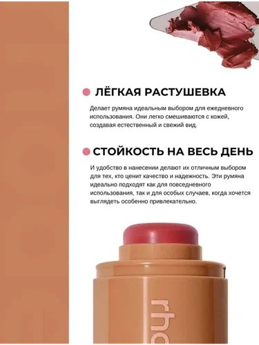 Кремовые румяна Rhode - станут не заменимым дополнением к вашему макияжу. Они идеально подходят для создания естественного румянца и подчеркивания естественной красоты вашего лица. Румяна в стике представлены в дизайне от бренда Rhode. Удобная упаковка обеспечивает комфортное нанесения продукта на кожу. Румяна для женщин станут настоящей находкой для тех, кто ищет легкое и быстрое решение для создания свежего и ухоженного образа на каждый день. Rhode румяна и их палитра оттенков позволяет каждой женщине выбрать свой идеальный тон, подчеркивающий индивидуальность и шарм. Нежные натуральные оттенки обеспечивают возможность варьировать интенсивность румянца в зависимости от времени суток и ситуации, будь то деловая встреча или романтический ужин. Румяна роуд легко адаптируются под любой цвет кожи.​