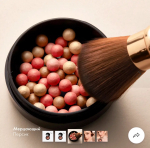 Для здорового сияния: Нанеси непосредственно на яблочки щёк и немного на нос. Добавь шарики румян других оттенков для более насыщенного образа.