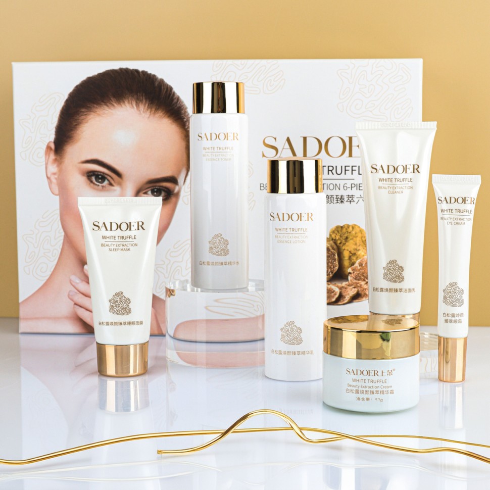 Антивозрастной подарочный набор уходовой косметики для лица White truffle омоложение от SADOER - это идеальный выбор для эффективного anti-age ухода, борьбы с ежедневным стрессом, тусклостью, пегментными пятнами, морщинами и расширенными порами. Этот женский Beauty box наполнен мягкостью, нежностью, сиянием и увлажнением, что подарит вашей коже профессиональный уход.