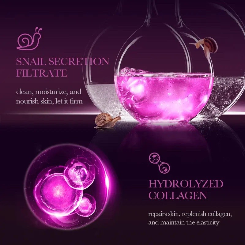 Экстракт натурального улиточного муцина, которым обогащена пенка, способствует регенерации клеточной структуры, восстановлению и омоложению покрова, укреплению эластинового и коллагенового каркаса. За счет активизации внутренних процессов улучшается микроциркуляция крови, выравнивается тон лица. Являясь мощным антиоксидантом, слизь улитки затягивает повреждения, защищает ткани от агрессивного влияния среды, ультрафиолетового излучения и преждевременного старения.
