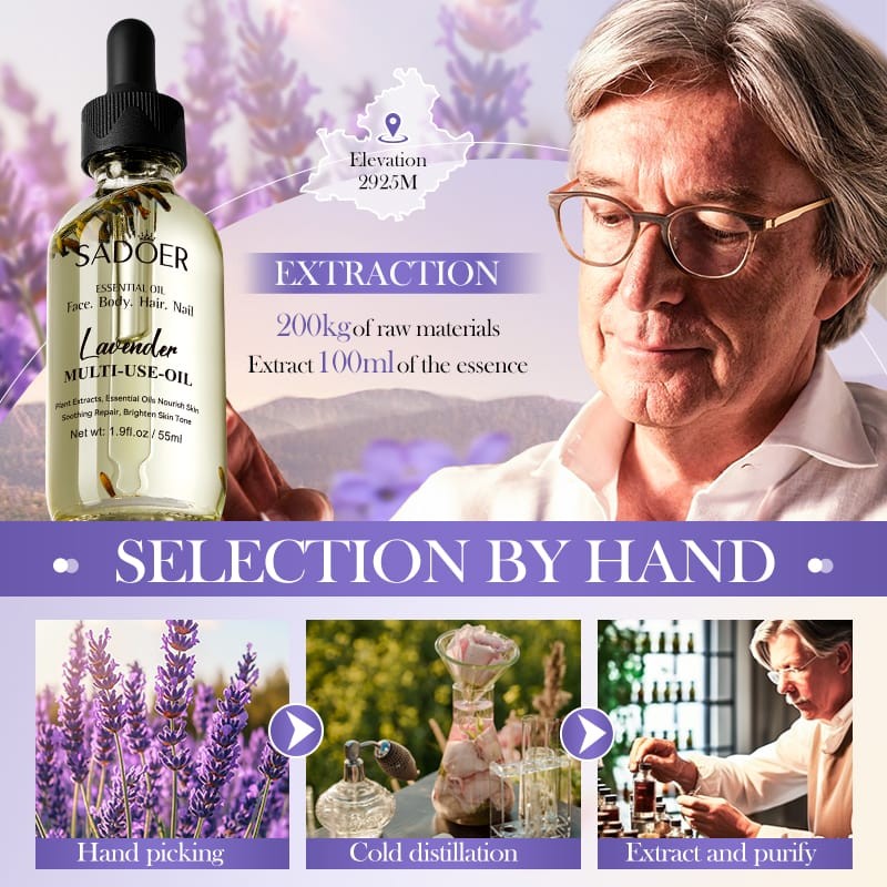SADOER Масло лаванды для лица, тела, волос, ногтей, 55мл.