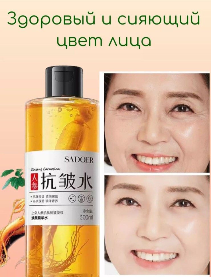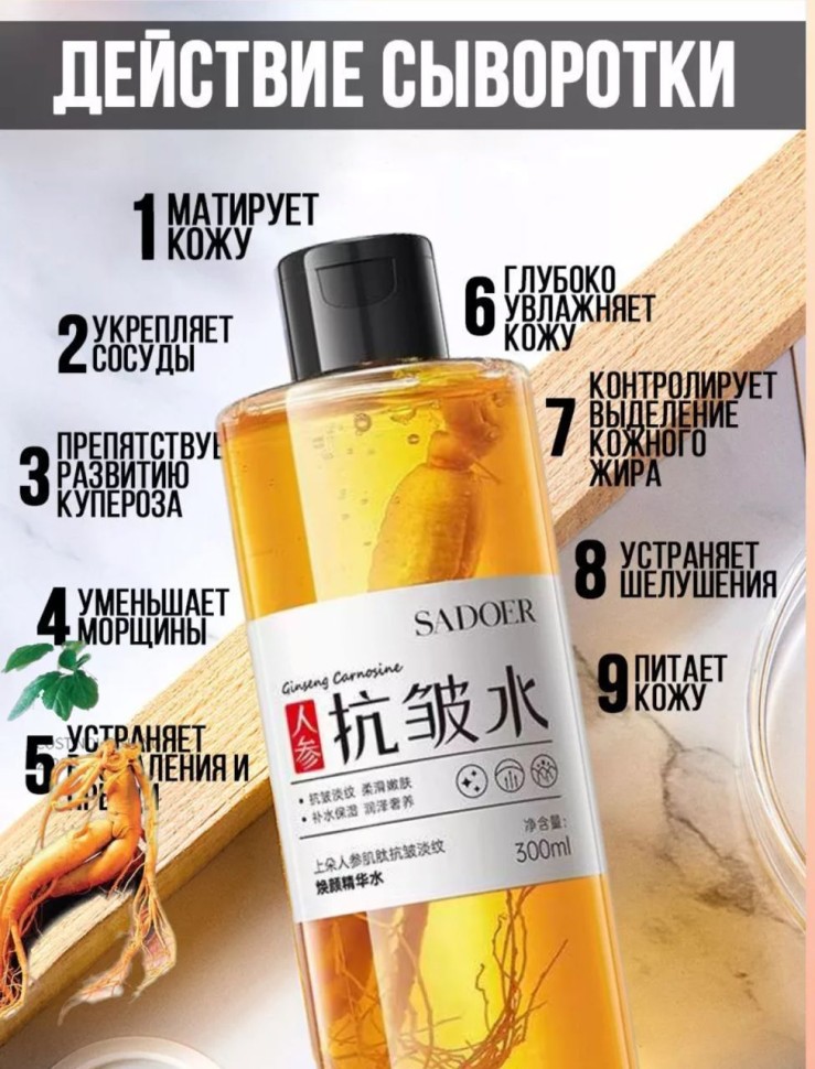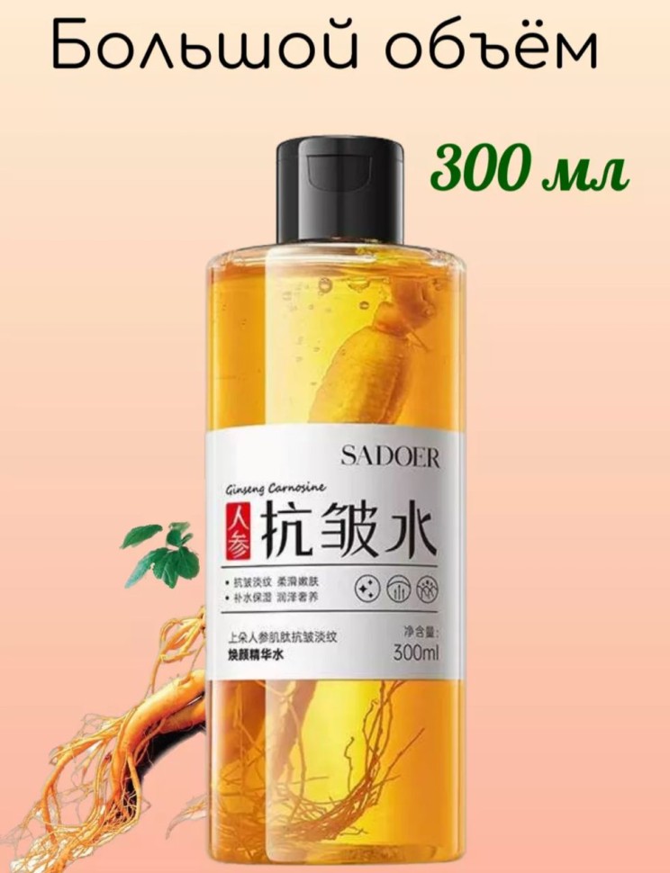 Омолаживающая эссенция для лица с корнем женьшеня и гиалуроновой кислоты-300 мл. Корень женьшеня содержит сапонины (гликозиды растительного происхождения с поверхностно-активными свойствами), оказывающие мощное противовоспалительное, тонизирующее, увлажняющее и регенерирующее действия. Омолаживающее действие женьшеня осуществляется путём стимуляции синтеза новых коллагеновых волокон, с одной стороны, и разрушения (ингибирования) старых волокон. Еще одним важным свойством 'корня жизни' является его борьба с фотостарением кожи за счет большого количества антиоксидантов. Настойка и экстракт корня оказывают мощное сосудоукрепляющее и иммуномодулирующее воздействие. В СОСТАВ ВХОДИТ: Эффективность данной омолаживающей эссенции также обусловлена наличием гиалуроновой кислоты, способной удерживать большое количество молекул воды в межклеточном пространстве тканей. Гиалуроновая кислота – универсальный увлажнитель, вырабатываемый в достаточном количестве молодым здоровым организмом.
