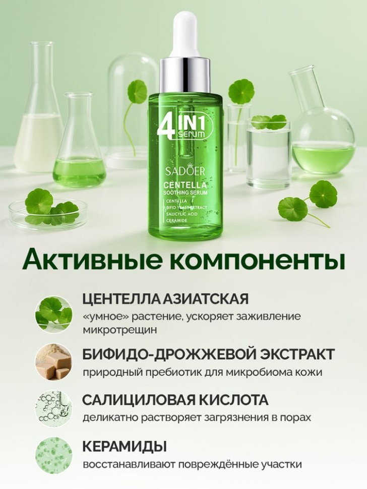 SADOER Успокаивающая сыворотка для лица 4in1 с центеллой азиатской, 40мл