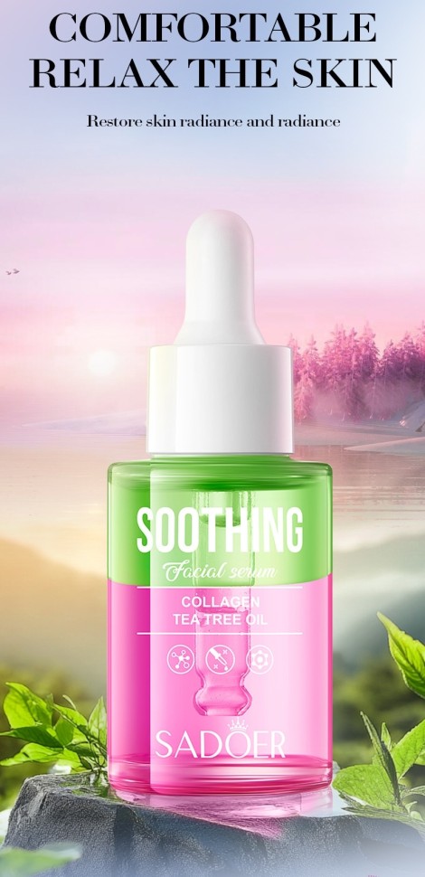 SADOER Успокаивающая сыворотка для лица с коллагеном и маслом чайного дерева, 30 мл.