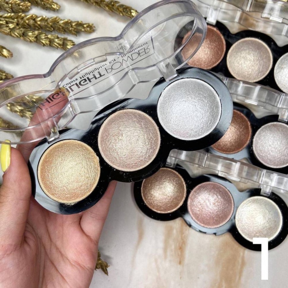 Компактная палетка сверкающих хайлайтеров. Покрытие от легкого до плотного. Визуально корректирует черты лица - подсвечивает, позволяет подчеркнуть скулы. Идеальное сочетание в одной палетке сразу 3 оттенков хайлайтера. Потрясающе удобно в использовании. Профессиональная текстура позволяет идеально растушевать продукт без всяких усилий. Подходит для всех типов кожи.