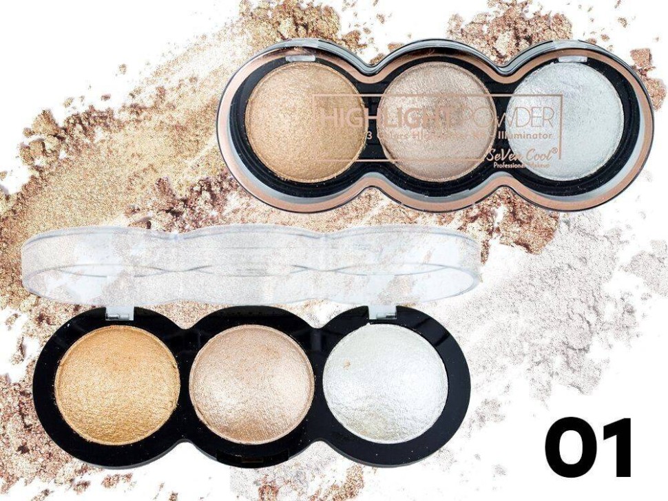 SeVen Cool Хайлайтер для лица, 3 цвета, тон 01
