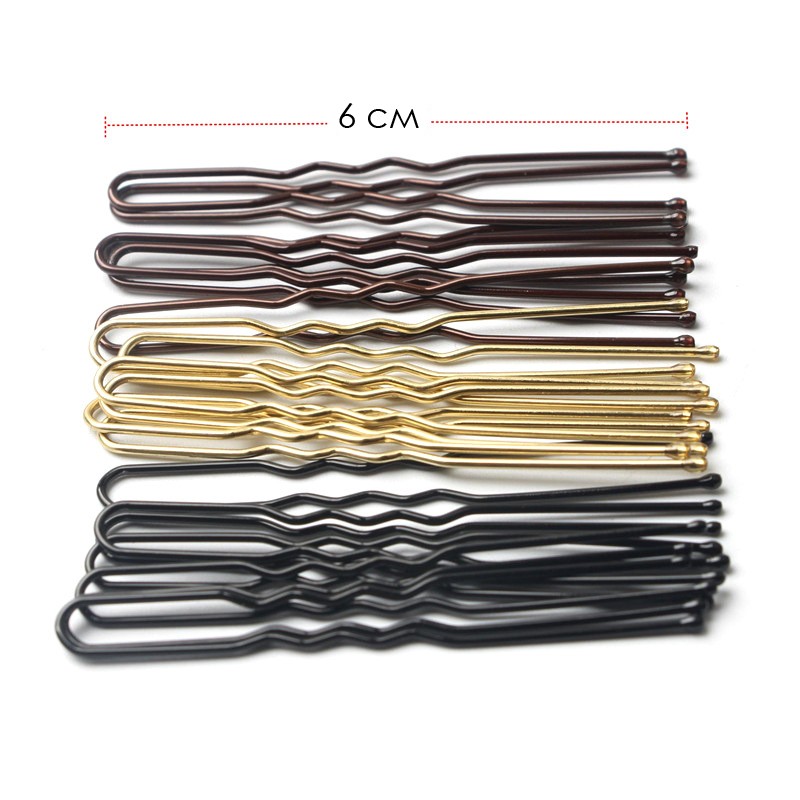 Материал: металля создания вечерних и повседневных причесок. Набор состоит из 50 шпилек размером 6 см. коричневого, черного или золотого цвета на выбор.