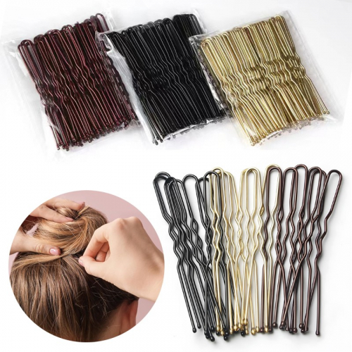 Шпильки для волос - главный инструмент дл..показатья создания вечерних и повседневных причесок. Набор состоит из 50 шпилек размером 6 см. коричневого, черного или золотого цвета на выбор.