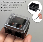 Универсальная точилка для косметиче..показатьских карандашей с 2 отверстиями разного диаметра (8 мм. и 12 мм.) с полупрозрачным колпачком и прочным стиком для очистки лезвий.Острое стальное лезвие обеспечивает идеальную заточку за секунды. Лезвия точилки для карандашей изготовлены из высококачественной нержавеющей стали.Крышка-контейнер предотвращает рассыпание стружки, сохраняя чистоту.Подходит для любых косметических карандашей, включая карандаши для губ и глаз. Эргономичная форма и прочный пластик делают использование точилки комфортным и долговечным.