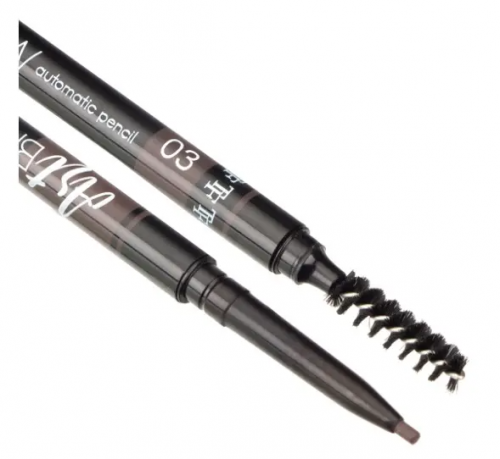 Автоматический карандаш, не требует заточки, имеет удобный и плавный выкручивающийся механизм и пушистую щеточку, которая растушевывает, расчесывает и придает форму бровям.