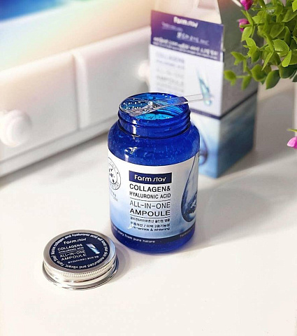 Сыворотка с гиалуроновой кислотой и коллагеном Collagen Hyaluronic Acid All-In-One Ampoule оказывает осветляющий и антивозрастной эффект. Морской коллаген и гиалуроновая кислота поддерживают здоровое сияние и гладкость кожи. Понижение выработки коллагена в коже плохо отражается на ее состоянии.