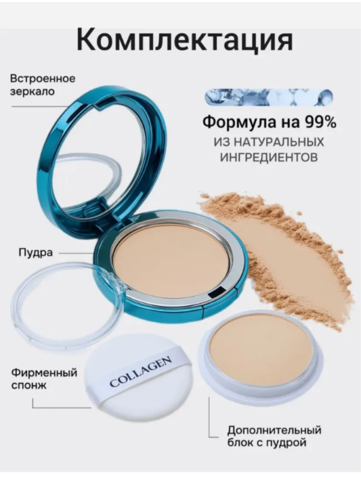 Увлажняющая коллагеновая пудра со сменным блоком, тон 13