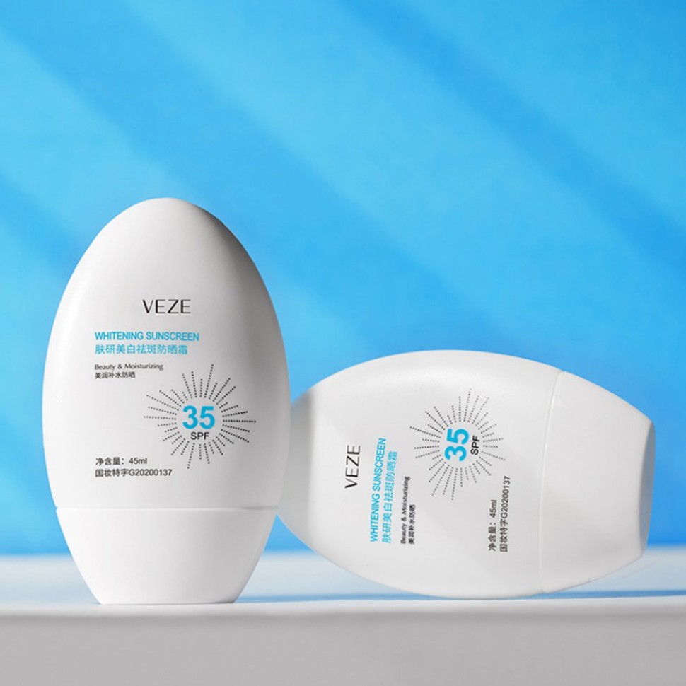 Отбеливающий крем Veze Whitening Sunscreen эффективно борется с веснушками, осветляет кожу и защищает ее от солнечных лучей, весь средство с SPF35. Текстура крема нежирная, легко впитывается, поэтому кожа даже в жару дышит. Благодаря компонентам из состава также насыщается влагой.