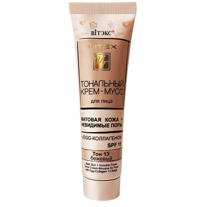 Крем-мусс тональный для лица МАТОВАЯ КОЖА+НЕВИДИМЫЕ ПОРЫ С EGG-коллагеном SPF15 тон 13 бежевый 30мл