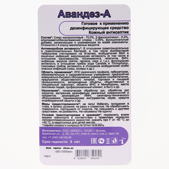 Антисептик Авандез-А, 5 л