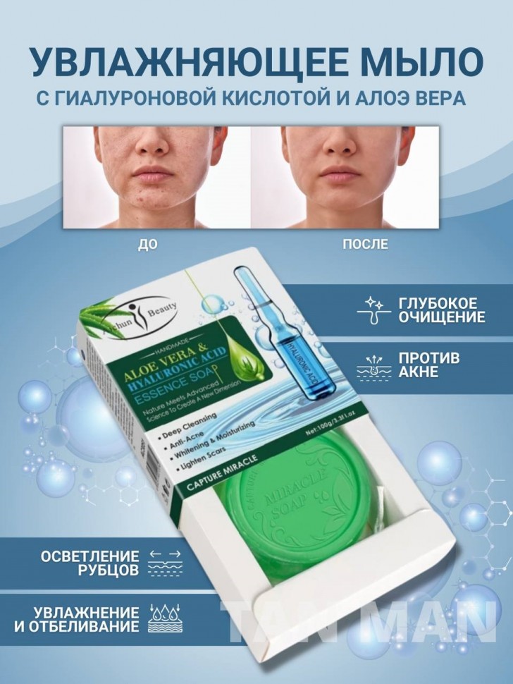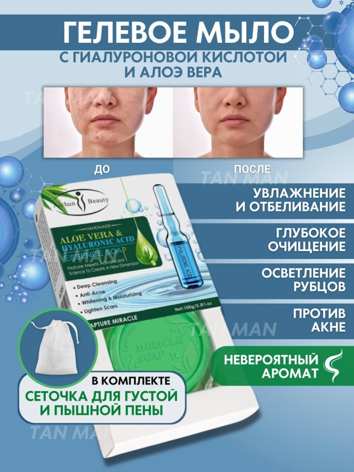 AICHUN BEAUTY Мыло Гелевое ALOE VERA & HYALURONIC ACID Увлажняющее Против прыщей Алоэ и Гиалуроновая кислота 100г (AC-3051)