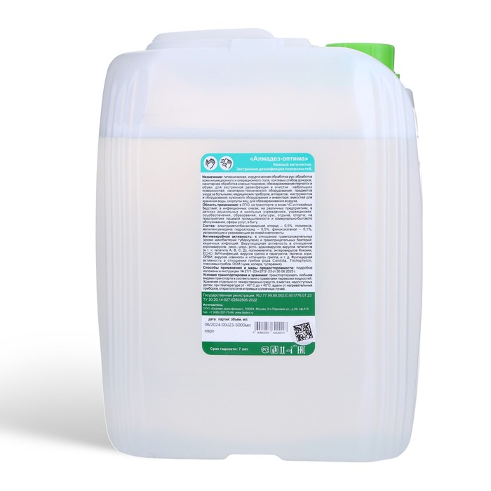 * Может использоваться для пропитывания на месте сухих салфеток, помещенных в Диспенсерную систему «Алмадез», и дальнейшего применения их для очистки и дезинфекции поверхностей методом протирания согласно утверждённой инструкции по применению.