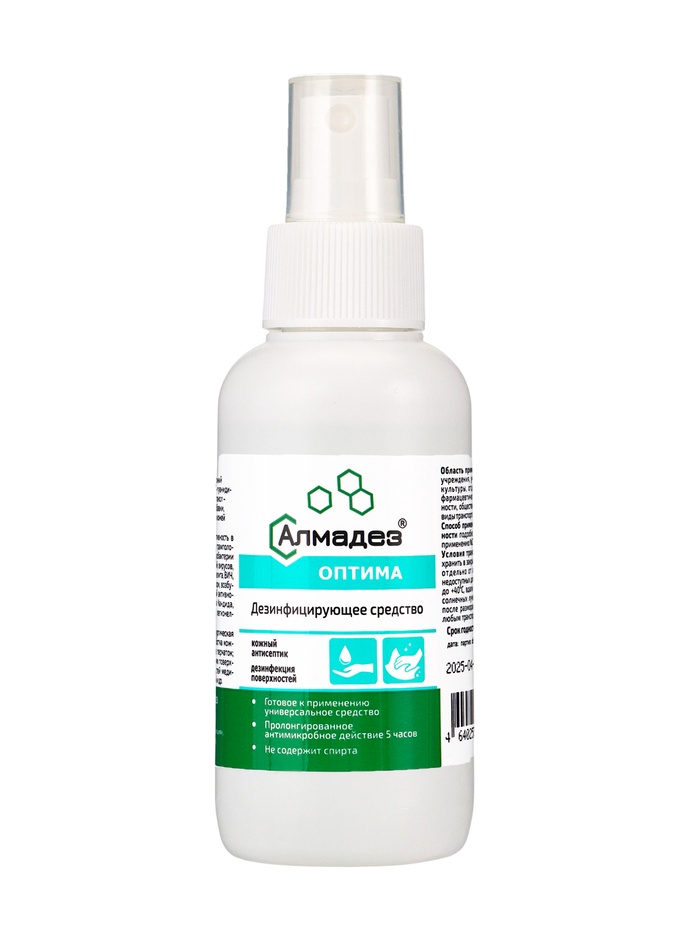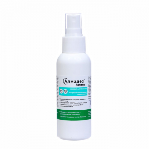 * Может использоваться для пропитывания на месте сухих салфеток, помещенных в Диспенсерную систему «Алмадез», и дальнейшего применения их для очистки и дезинфекции поверхностей методом протирания согласно утверждённой инструкции по применению.