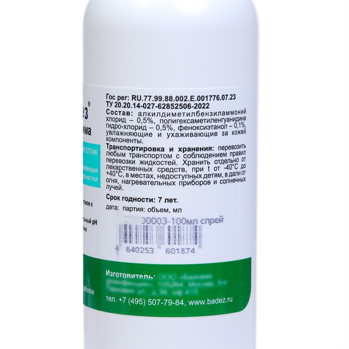 Состав: изопропропанол – 63,5%, ЧАС - (0,1%), изотиазолинон, кокамидопропилбетаин, увлажняющие и ухаживающие за кожей компоненты, а также функциональные добавки.