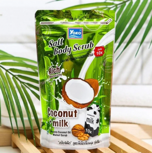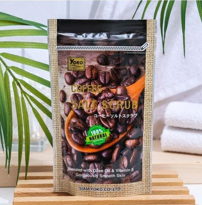 Натуральный солевой скраб для тела из Таиланда Yoko создан на основе Морской соли и мелких частичек натурального кофе.