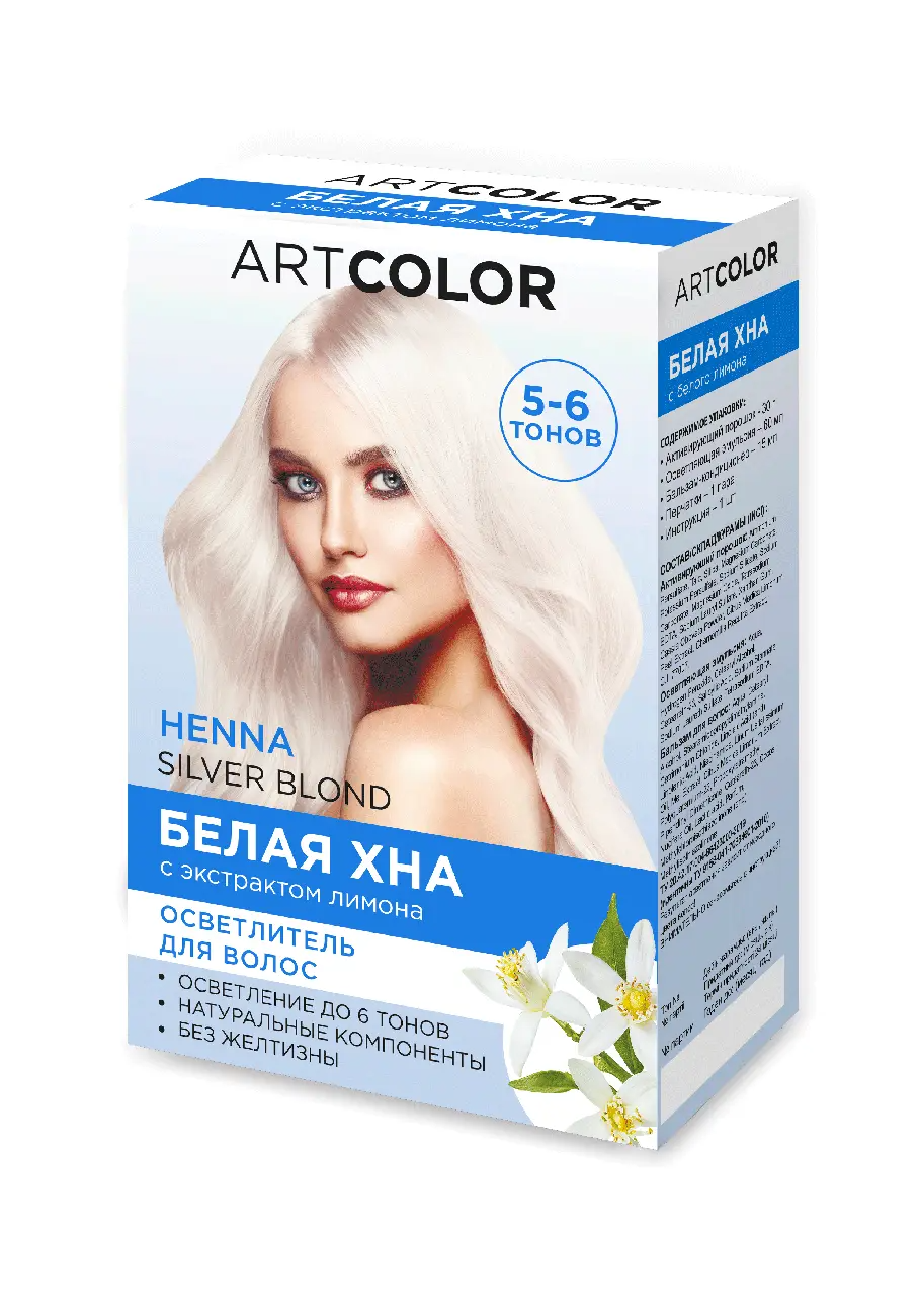 Классический осветлитель для волос с усиленной формулой ARTCOLOR белая хна равномерно и бережно осветляет волосы, легко наносится, не стекает с волос и является прекрасной основой для последующего окрашивания. С помощью ARTCOLOR БЕЛАЯ ХНА в домашних условиях или в салоне Вы гарантированно получите чистый и светлый оттенок волос. Позволяет легко получить оптимальное и равномерное осветление волос по всей длине. Благодаря действию новой формулы и комплекса витаминов, волосы не теряют своей гладкости, мягкости и блеска. Инновационная формула осветляющей эмульсии усиливает смягчающий эффект, а специальная формула увлажняющего бальзама-кондиционера, содержащего льняное масло и комплекс витаминов PP, F, придает Вашим волосам шелковистость, эластичность и силу, великолепную расчесываемость и здоровое сияние!
