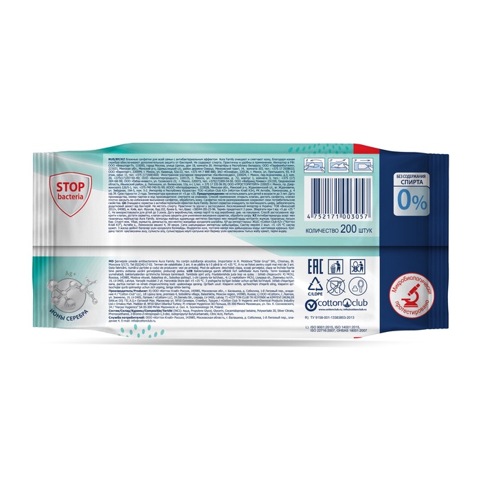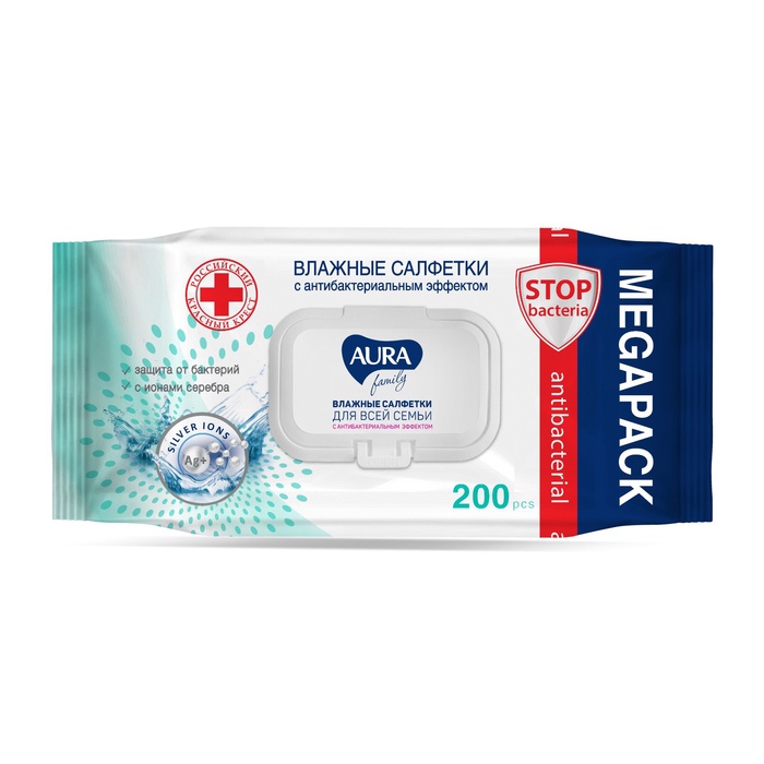 Влажные салфетки Aura Family, для всей семьи, 200 шт.