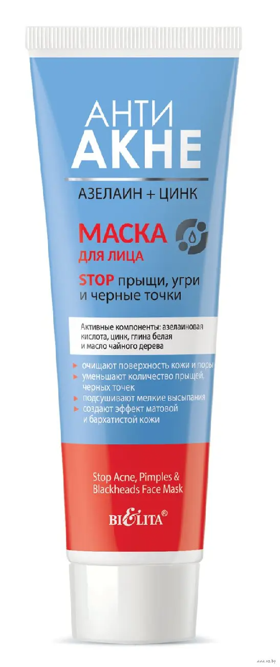 Активные компоненты (азелаиновая кислота, цинк, глина белая и масло чайного дерева):