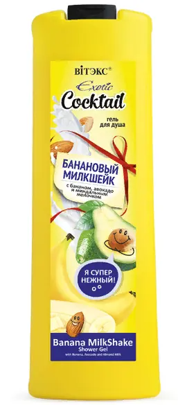 Давай знакомиться! Я – Банановый милкшейк, не обыкновенный гель для душа, а настоящий супернежный коктейль для изысканного ухода за кожей. Я впитал в себя все полезные свойства вкуснейшего банана, спелого авокадо и сладкого миндального молочка, чтобы одновременно подарить коже нежнейшее очищение, глубокое питание и бархатистую мягкость. Теплый, игривый и соблазнительный аромат моей кремовой пены окутывает легким облаком и погружает в атмосферу счастливой беззаботности.