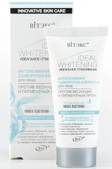 Интенсивная сыворотка-корректор предназначена для осветления пигментных пятен, появляющихся на коже в результате процесса старения кожи, воздействия ультрафиолетовых лучей и негативного влияния факторов окружающей среды, провоцирующих пигментацию. Восстановление структуры кожи происходит на клеточном уровне вследствие проникновения активных ингредиентов сыворотки глубоко в эпидермис. Благодаря уникальной технологии «умного» осветления активные комплексы Dermawhite® и Lumiskin™ сыворотки-корректора помогают снизить синтез меланина и минимизировать появление пигментных пятен. Вода, глицерин, циклопентасилоксан, циклогексасилоксан, полиметилсилсесквиоксан, диметикон, изогексадекан, цетеарилметикон, ПЭГ-40 стеарат, стеарет-2, стеарет-21, полиакрилат натрия, гидрогенизированный полидецен, тридецет-6, маннитол, глюконат натрия, лимонная кислота, цитрат натрия, экстракт листьев Walteria Indica (вальтерии), декстрин, ферулиновая кислота, изопропилпальмитат, глицерилтрикаприлат/капрат, диацетилболдин, экстракт листьев Arctostaphylos Uva-Ursi (толокнянки), парфюмерная композиция, бензиловый спирт, метилхлоризотиазолинон, метилизотиазолинон, 2-бром-2-нитропропан-1,3-диол, бутилфенилметилпропиональ, лимонен, гераниол, гексилциннамаль, линалол.