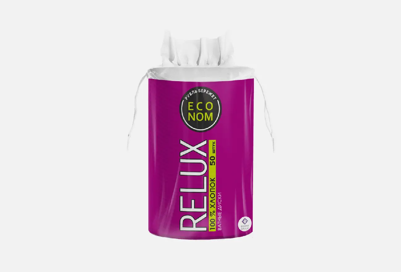 RELUX ватные диски изготовлены из 100% хлопка. Диски обладают оптимальной плотностью 165 г./м2, не расслаиваются. 100% хлопок