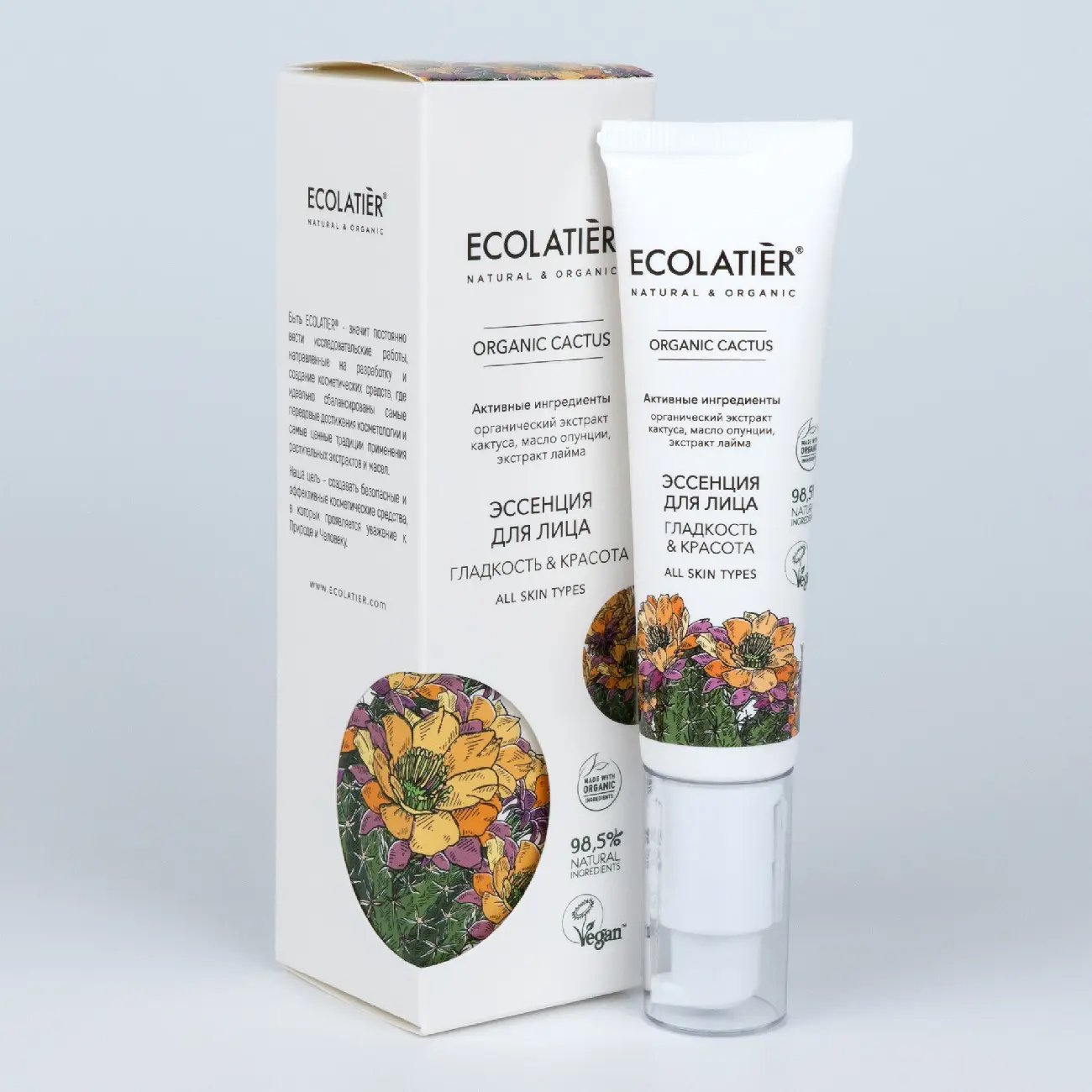 Эссенция ECOLATIER® Organic Cactus насыщает кожу влагой и активными компонентами, которые дают импульс к собственной регенерации клеток и синтезу коллагена, делают кожу гладкой и подтянутой.