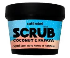 Позаботься о своей коже вместе со скрабом для тела Кокос и Папайя CAFÉ MIMI! Скраб на основе тростникового сахара и морской соли глубоко очищает и отшелушивает кожу, дарит ей восхитительную мягкость и гладкость. Масло Кокоса глубоко питает, увлажняет и смягчает кожу. Экстракт Папайи обладает выраженным противовоспалительным и успокаивающим действием, способствует регенерации клеток кожи. Sucrose (Сахар), Maris (Sea) Salt (Морская Соль), Cocos Nucifera (Coconut) Oil (масло Кокоса), Carica Papaya (Papaya) Fruit Extract (экстракт Папайи), Vegetable Glycerin (растительного происхождения), Butyrospermum Parkii (Shea) Butter (масло Ши), Glycine Soja (Soybean) Oil (масло Сои), Aqua, Cetearyl Alcohol, Polysorbat-20, Silica Dimethyl Silylate, Perfume, Tocopheryl Acetate (витамин Е), Potassium Sorbate, Sodium Benzoate, Limonene, Coumarin, Citronellol, Citral, Geraniol, Linalool