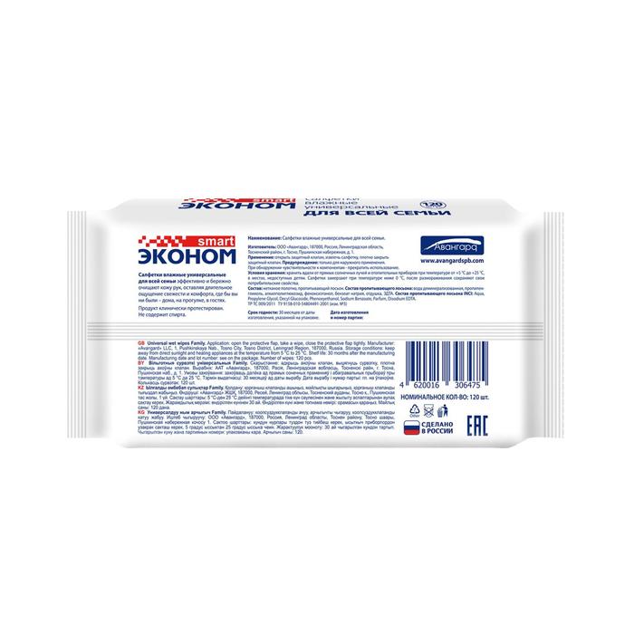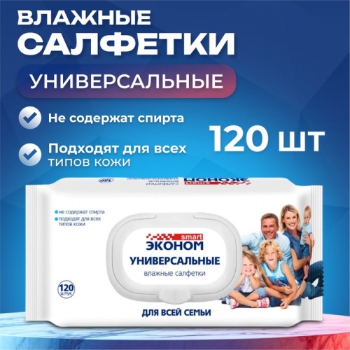 Влажные салфетки «Эконом Smart», для всей семьи, 120 шт.