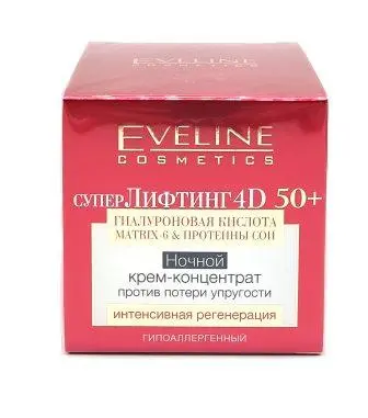 Серия LIFTING 4D — это инновационная программа против морщин с лифтинговым и моделирующим эффектом для зрелой кожи старше 40 лет. Формулы косметики были разработаны на основе ТРОЙНОЙ СОВРЕМЕННОЙ ТЕХНОЛОГИИ LIFT&HYALURON, вдохновленной методами эстетической дерматологии. SUPER EFFECT 4D - четырехмерное воздействие на поверхность эпидермиса: УВЛАЖНЕНИЕ, УКРЕПЛЕНИЕ, УПРУГОСТЬ, ЭЛАСТИЧНОСТЬ. SUPER EFFECT 4D: энергия, необходимая для четырех клеточных процессов, в четыре раза более продолжительная жизнь клеток кожи. SUPER EFFECT 4D - воздействие на все слои эпидермиса: ТОЧНО, БЫСТРО, ДОЛГОСРОЧНО, ЭФФЕКТИВНО. SUPER EFFECT 4D - энергия 4-х сил природы, в одной баночке, у вас под рукой! Усовершенствованная формула омоложения. Концентрированный дневной и ночной крем на базе многолетних научных исследований, действуют в четырех направлениях для омоложения кожи. SUPER EFFECT 4D: уменьшение количества, длины, видимости и глубины морщин. Результат: омоложение биологического возраста кожи. Aqua (Water), Glycerin, Octyldodecanol, Dicaprylyl Carbonate, Sodium Polyacrylate, Butyrospermum Parkii Butter, Sodium Hyaluronate, Butylene Glycol, Laminaria Hyperborea Extract, Coco-Caprylate, Argania Spinosa Kernel Oil, Panthenol, Ceteareth-20, Mineral Oil, Lanolin Alcohol, Hydroxypropyl Cyclodextrin, Palmitoyl Tripeptide-38, Royal Jelly Extract, Hydrolyzed Soy Protein, Pentylene Glycol, Polysorbate 20, 3-Aminopropane Sulfonic Acid, Calcium Hydroxymethionine, Hydroxyethy|cellulose, Caprylic/Capric Triglyceride, Spilanthes Acmella Flower Extract, Sphingolipids, Saccharomyces, Xylinum, Black Tea Ferment, Propylene Glycol, Equisetum Arvense Leaf Extract, Calcium PCA, Allantoin, PEG-20 Glyceryl Laurate, Tocopherol, Linoleic Acid, Retinyl Palmitate, Copper PCA, Phenoxyethanol, Caprylyl Glycol, Chlorphenesin, DMDM, Hydantoin, Parfum.