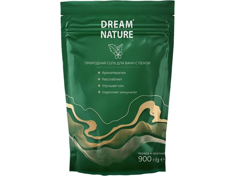 Dream Nature Соль для ванн с пеной "Череда и крапива" дой-пак 900 г.(14)