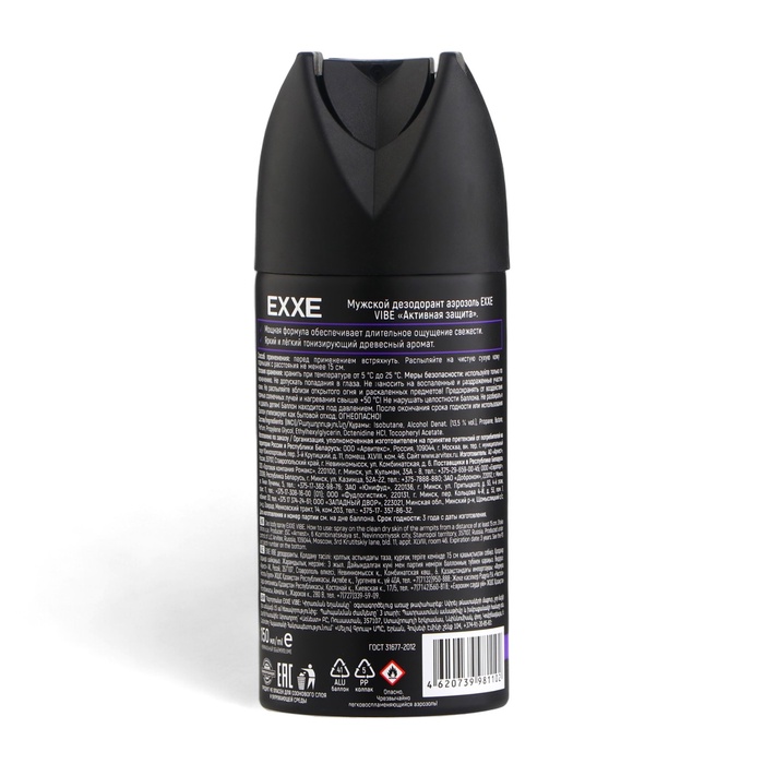 Дезодорант-аэрозоль EXXE VIBE мужской – это идеальный выбор для современного мужчины, который ценит эффективность и стиль, обеспечивая надежную защиту и свежесть в любое время дня.