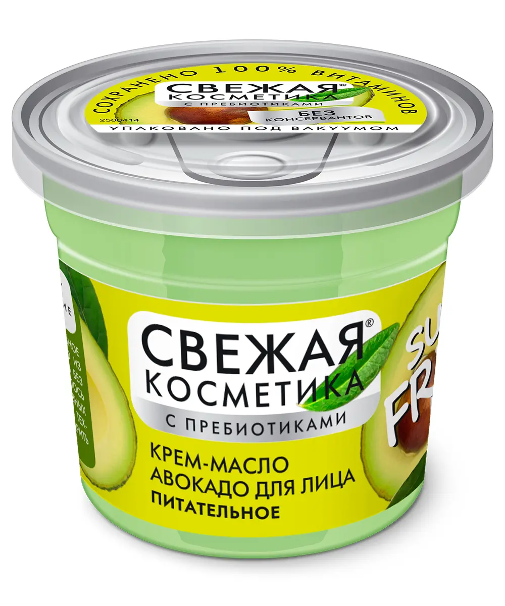 В этой баночке 100% натуральный питательное крем-масло для лица. Его приготовили из самых свежих ингредиентов и пребиотиков без вредных добавок и консервантов. Благодаря технологии вакуумной упаковки все компоненты сохранены в первозданном виде, чтобы подарить коже максимум пользы. Aqua, Glycerin, Persea Gratissima Oil (Масло Авокадо), Butyrospermum Parkii Butter (Масло Ши), Cetearyl Alcohol, Glyceryl Stearate, Mel (Мёд Манука), Collagen (Коллаген), Tocopheryl Acetate (Витамин Е), Retinyl Palmitate (Витамин А), Xanthan Gum, Sodium Stearoyl Glutamate, Lactobacillus Ferment, Fructooligosaccharides (Пребиотики), Hippophae Rhamnoides Fruit Oil (Масло Облепихи), Benzyl Alcohol, Ethylhexylglycerin, Chlorophyllin-Copper Complex, Parfum.