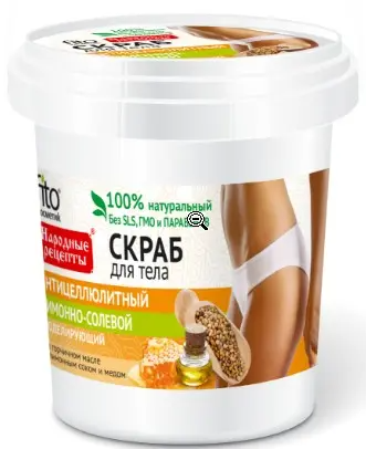 Антицеллюлитный скраб для тела, на основе сахара или соли деликатно очищают и обновляет кожу, делают ее подтянутой, молодой и упругой. Натуральные экстракты обладают мощным лифтинг-эффектом, тонизируют и омолаживают кожу. Чарующие ароматы превратят принятие душа в настоящую SPA процедуру и подарят отличное настроение. Maris Salt (Морская соль), Persea Americana Oil (масло Авокадо), Brassica Alba Seed Oil (горчичное масло), Glycerin, Aqua, Honey Extract (Экстракт Меда), Wheat Germ Oil (Масло Ростков Пшеницы), PEG 40 Hydrogenated Castor Oil, Laminaria Saccharina extract (экстракт ламинарии), Zingiber Officinate Root Extract (экстракт имбиря), Citrus limonium Extract (экстракт лимона), Cetyl Alcohol, Parfum, Sodium Benzoate, Potassium Sorbate, Sorbic Acid, CI 75810, CI 75170.