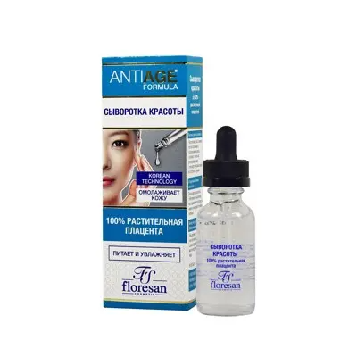 Сыворотка красоты с растительной плацентой — это быстрое решение сложных проблем: коррекция овала лица, разглаживание морщин, восстановление эластичности кожи. Растительная плацента, с высоким содержанием аминокислот помогает синтезировать коллаген и усиливать регенеративные процессы в клетках кожи. Кожа обновляется, становится более гладкой и упругой, разглаживаются морщинки, замедляется процесс старения, восстанавливается естественная эластичность. Эффект салонной процедуры! Ваше лицо выглядит ухоженным, свежим и сияющим. Aqua, Propylene Glycol, Aloe Barbadensis Extract (экстракт алоэ), Niacinamide (витамин В3), Hydrolyzed Collagen (гидролизованный коллаген), Glycine (глицин), Hydrolysed Soy Protein (гидролизованные соевые протеины), Tocopheryl Acetate (витамин Е), Avena Sativa Bran Extract (экстракт овса), PEG-40 Hydrogenated Castor Oil, Trideceth-9, Carbomer, Triethanolamine, Parfum, DMDM Hydantoin.