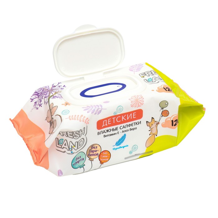 Влажные салфетки для детей Freshland с алоэ вера и витамином Е,120 шт.