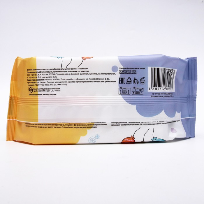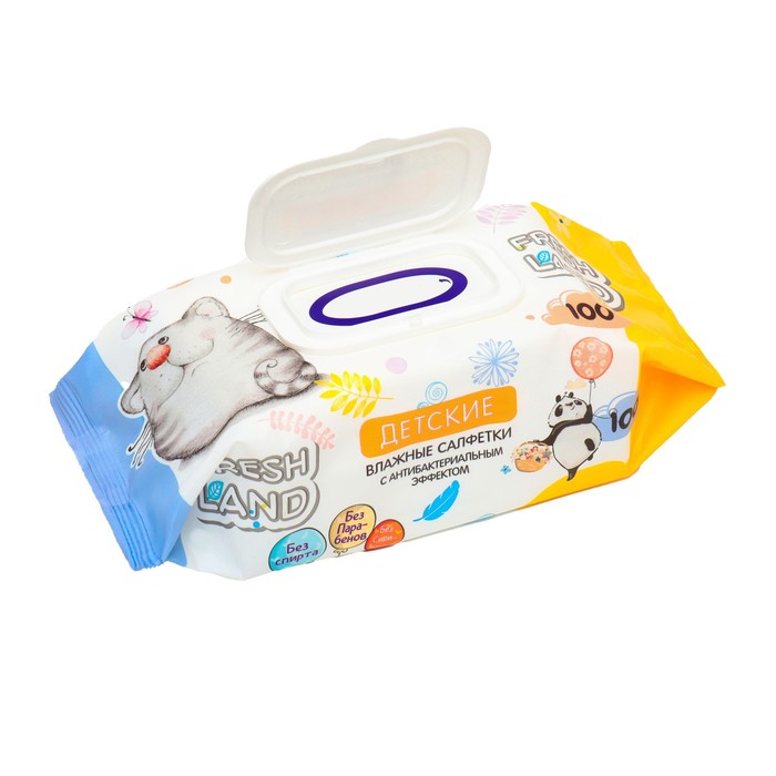 Влажные салфетки для детей Freshland с антибактериальным эффектом, 100 шт.