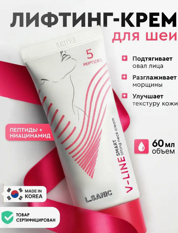 до 21.01.27 Kрем L.Sanic V-line Smart Lifting Neck Cream — это настоящее волшебство для вашей кожи, способное вернуть ей нежность и молодость. Этот крем оказывает потрясающий подтягивающий эффект, которого вы так долго ждали! Кожа на шее и декольте постоянно подвергается воздействию внешних факторов, и именно здесь видны первые признаки старения. V-line Smart Lifting Neck Cream обеспечивает высококачественную поддержку этой области благодаря уникальным ингредиентам, таким как коллаген, масло ши, ниацинамид и комплекс пептидов. Крем также богат натуральными маслами рисовых отрубей и авокадо, которые обогащают эпидермис питательными веществами. Он помогает уменьшить морщины, улучшить текстуру кожи и придать ей сияние. Почувствуйте великолепный эффект лифтинга и подтяжки овала лица уже после первого применения, и наслаждайтесь молодой и упругой кожей на шее и декольте. Это бесценный подарок для вашей кожи, который она так заслуживает.