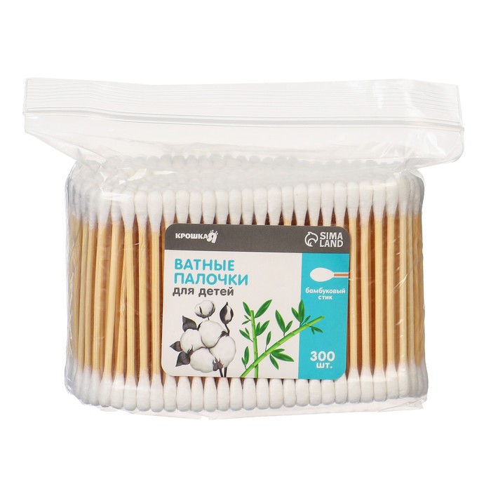 Ватные палочки для детей, пакет 300 шт., наконечник - классика, хлопок/бамбук(стик) Крошка Я