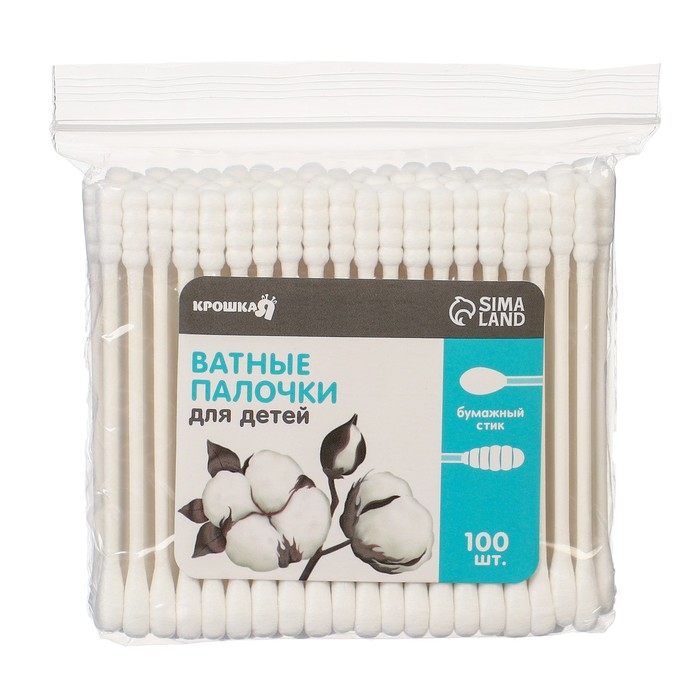 Ватные палочки, пакет 100 шт., наконечник - спираль, классика, хлопок/бумага(стик)